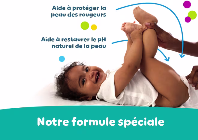 Une formule spéciale qui restaure le pH naturel de la peau du bébé.