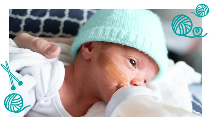 Que vous soyez débutant(e) ou expert(e) en tricot, vous avez peut-être envisagé de confectionner de tout petits articles pour les bébés prématurés. Les prématurés ont souvent du mal à réguler leur propre température corporelle (c'est pourquoi vous les avez peut-être déjà vu dans des incubateurs qui les aident à rester au chaud après avoir quitté le ventre maternel). Les prématurés ont donc besoin de chaleur : c’est là que les petits bonnets et les chaussons tricotés peuvent s’avérer utiles.