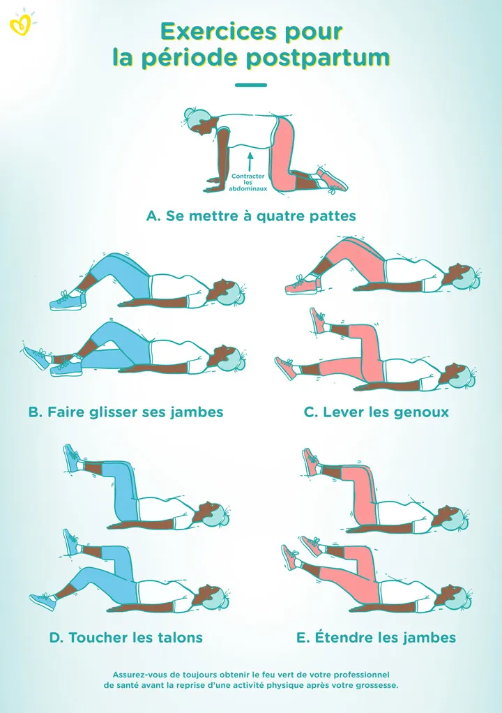 L’illustration suivante vous présente également d’autres exercices à essayer après un accouchement pour renforcer vos muscles.